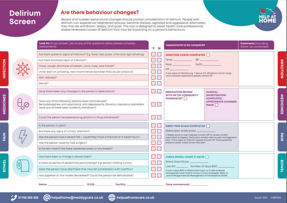 Sudden changes in behaviour which are out of character should prompt a consideration for delirium. This[…]